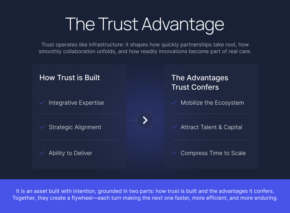 Trust creates the conditions for alignment among stakeholders who often operate on different timelines, priorities, and incentives. It makes it possible to bring together health systems, life sciences organizations, payers, and other partners around shared goals that no single entity could achieve alone.