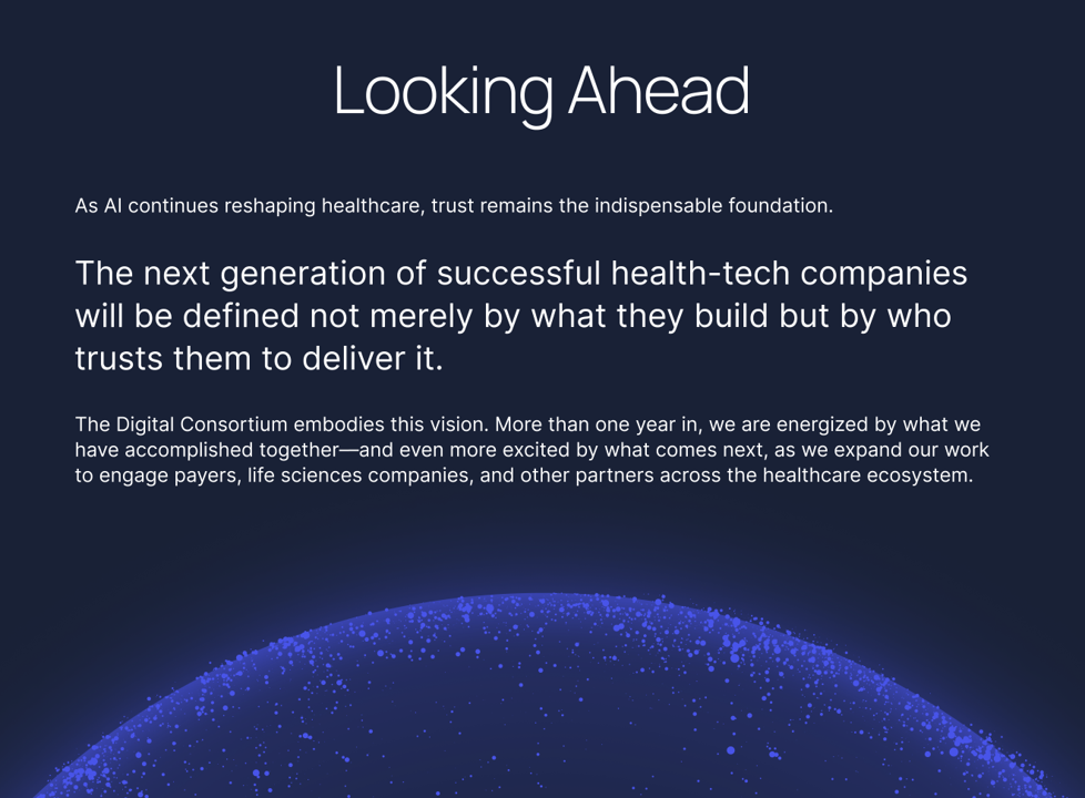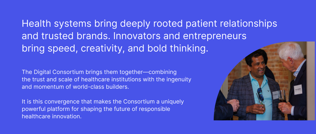 For us, trust in healthcare innovation is the confidence that new solutions will truly serve patients and clinicians, integrate into complex systems, and endure over time. It is built on the alignment of patients, clinicians, health systems, payers, life sciences, and entrepreneurs around solutions that are safe, reliable, and built to last. The Consortium harmonizes the tension between tech’s impulse to “move fast and break things” and healthcare’s sacred obligation to “do no harm”.